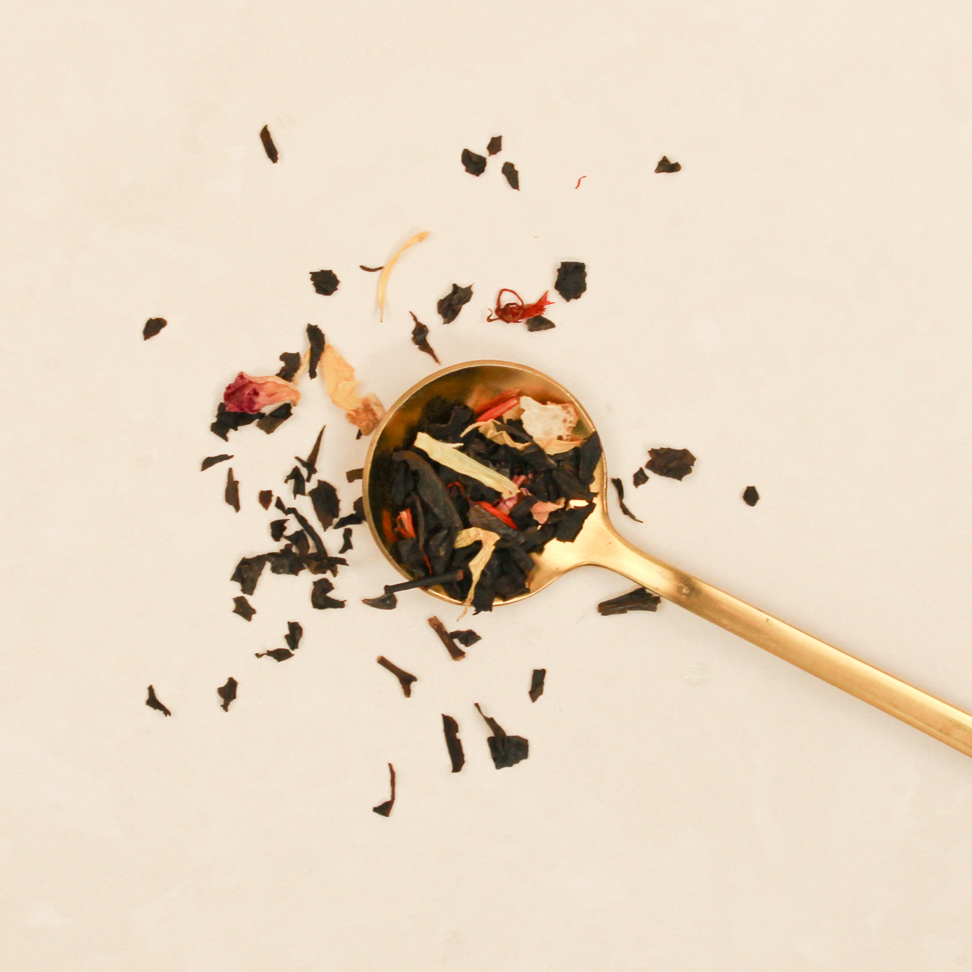 Black tea, orange peel, safflower, calendula, rose, vanilla, apricot, and flavour.