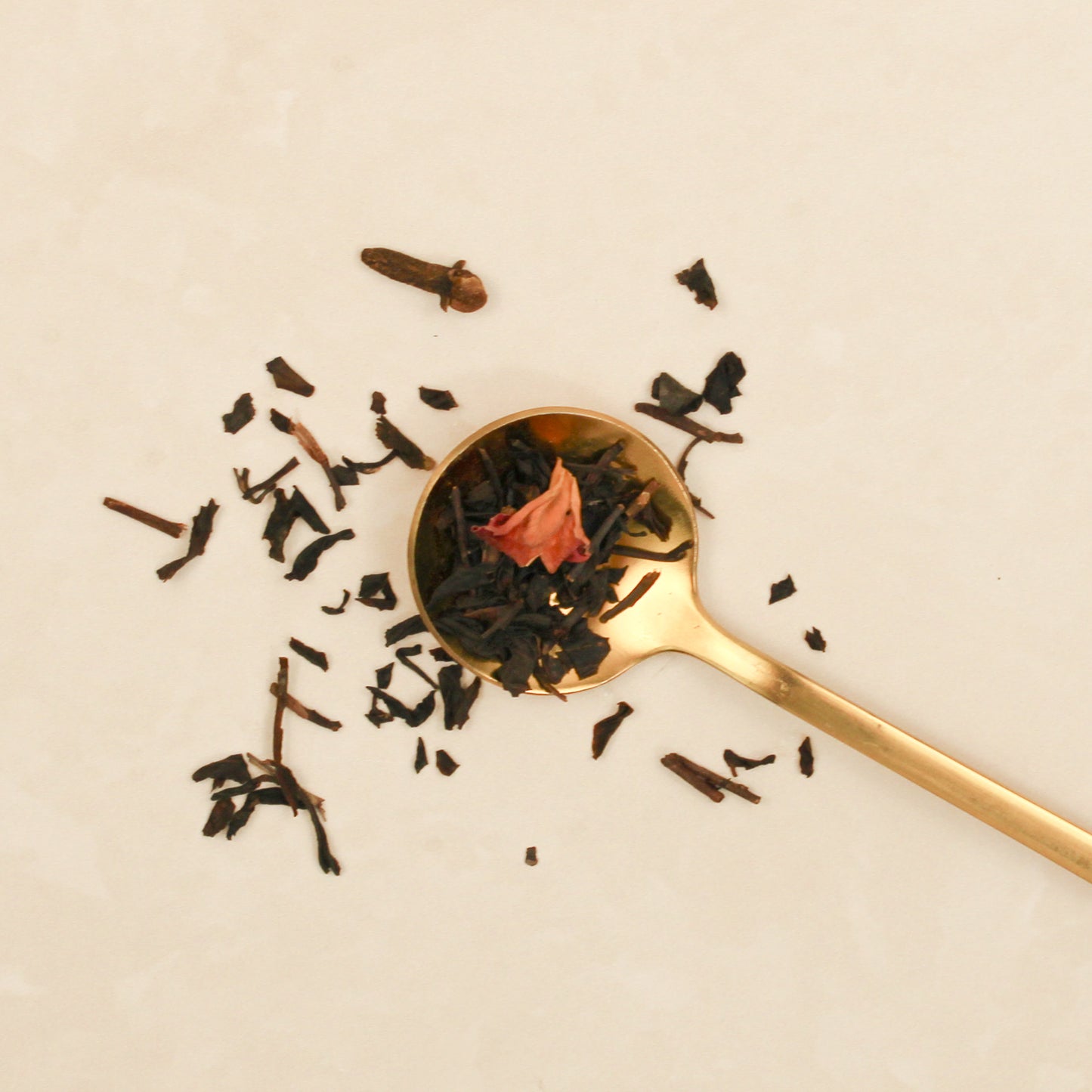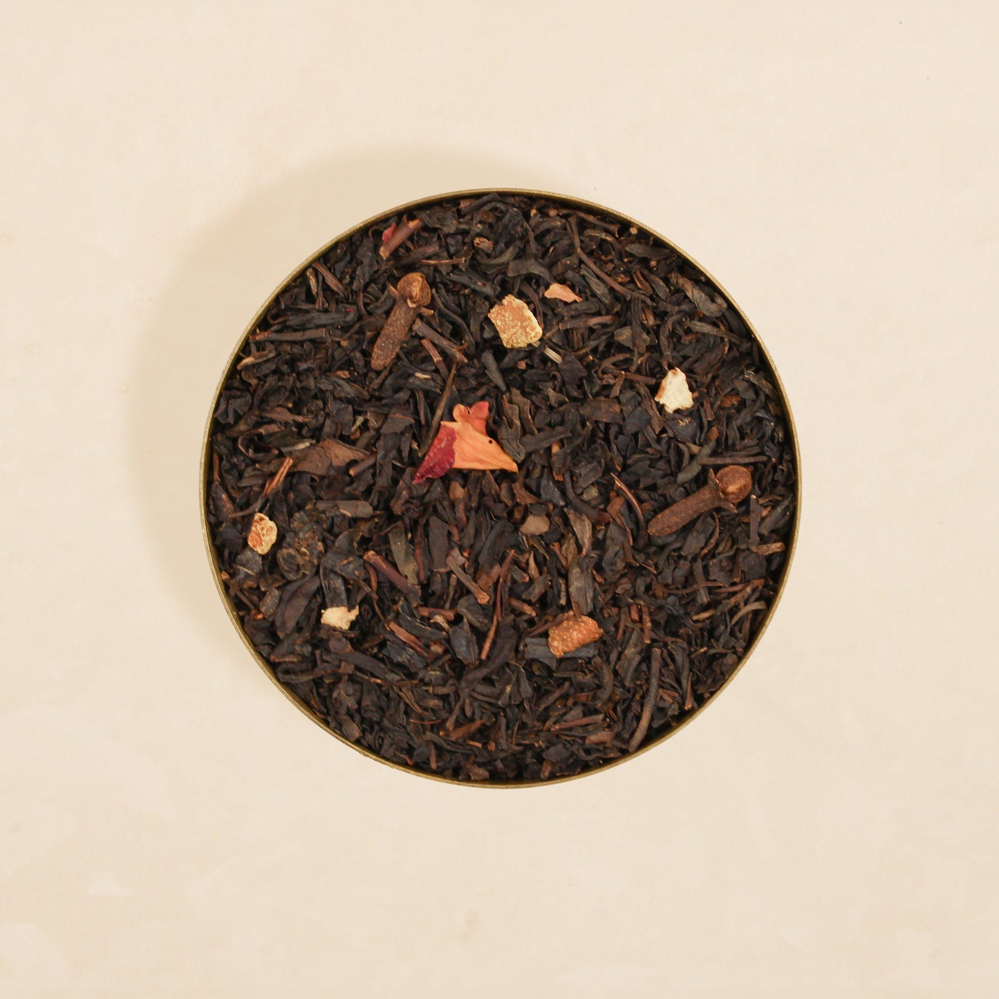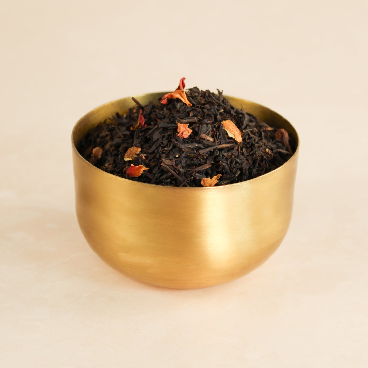 Black tea, orange peel, rose, cinnamon, clove, and apple flavour.