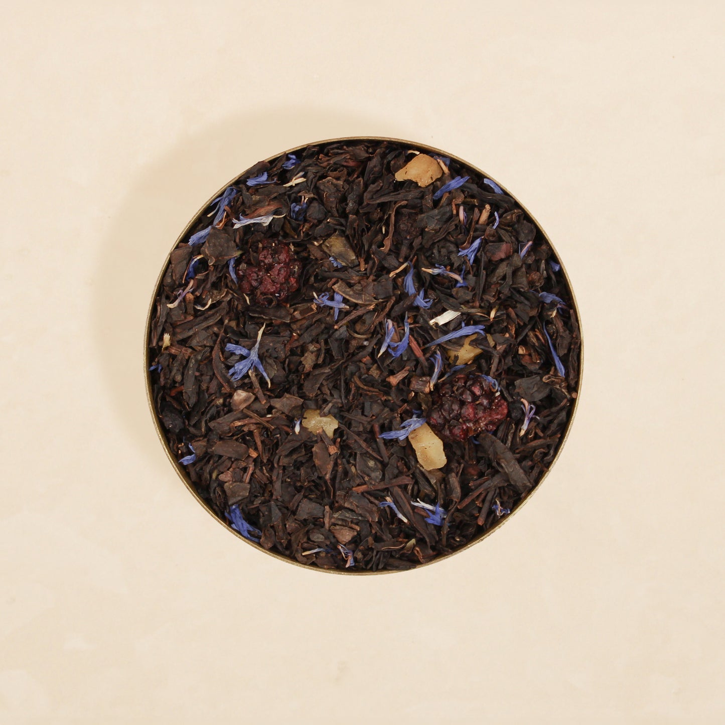 Black tea, mango, blueberry, blackberry, cornflower, and flavour.