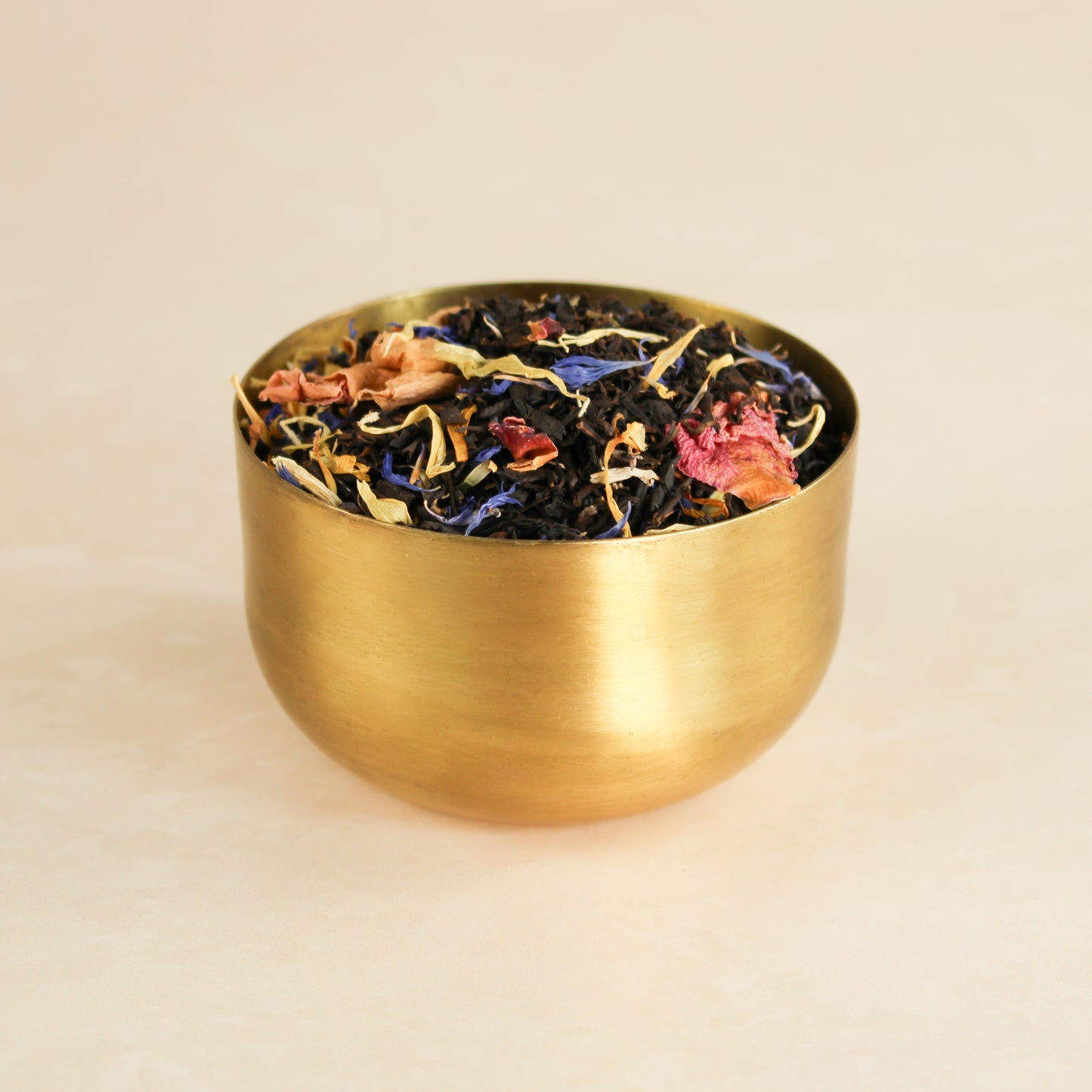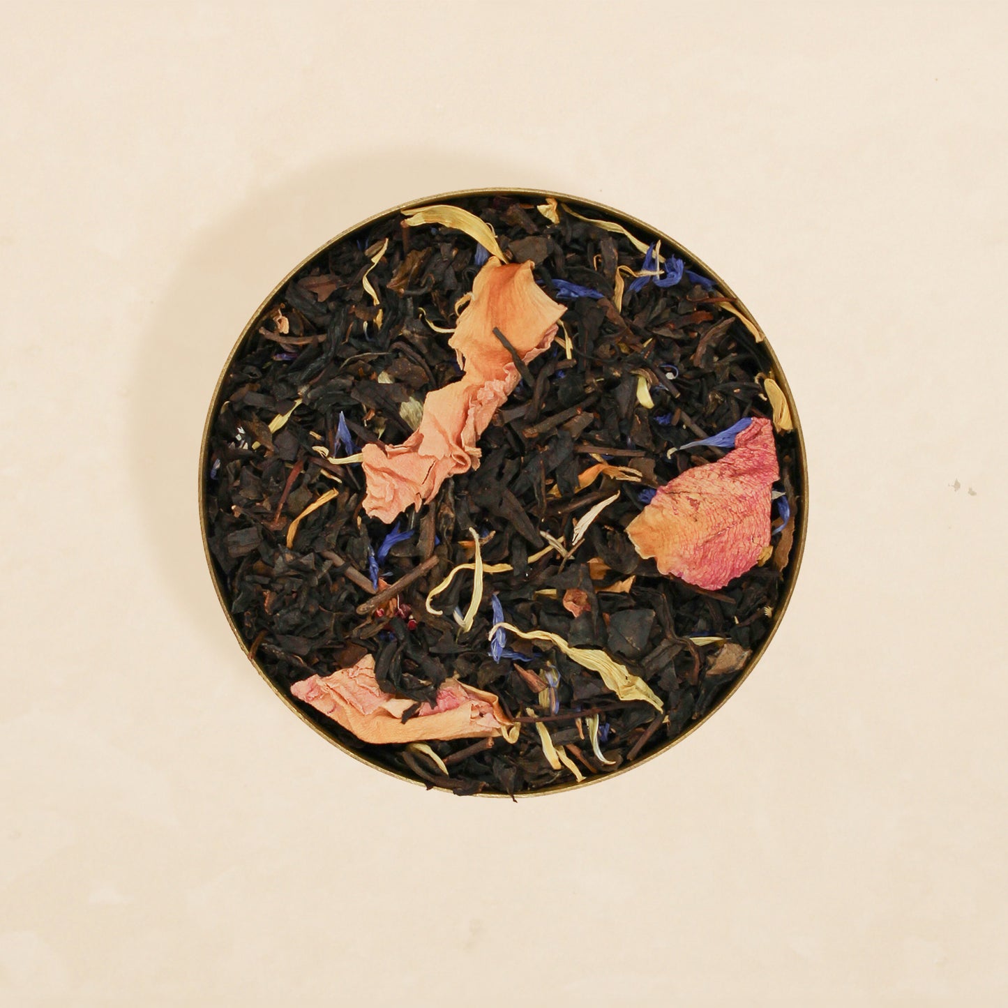 Black tea, cornflower, calendula, rose, and apricot flavour.