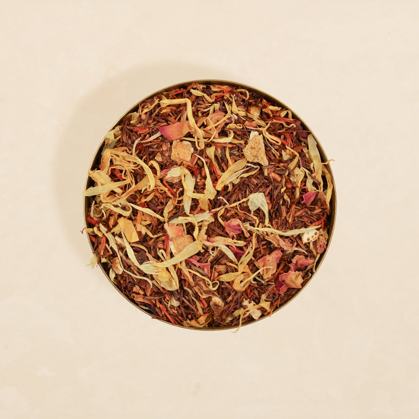 Rooibos, orange peel, safflower, calendula, rose, vanilla and apricot flavour.