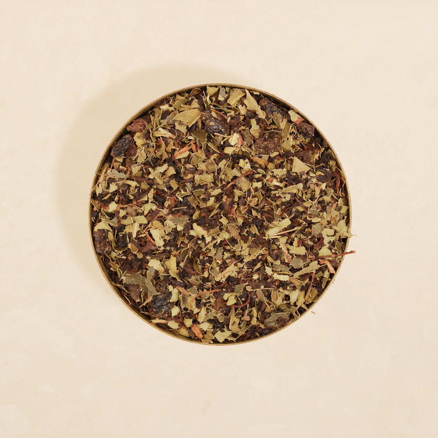 We combine the leaves of pepperberry with the health benefits of aniseed myrtle. In doing so, we create a tonic that is thought to aid with digestion, immunity, and relaxation. This blend also takes inspiration from the traditional medicine teachings of Aboriginal Australians, the first cultivators of these ingredients in Australia. The end result is a sweet tea infusion with tart Tasmanian notes paired with the maltiness of Daintree black tea.