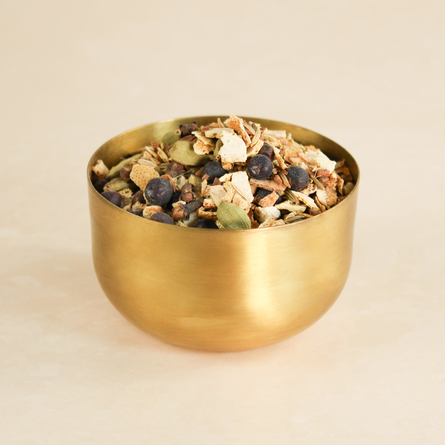 An Ayurvedic herbal tisane with cardamom, cinnamon, and spices.