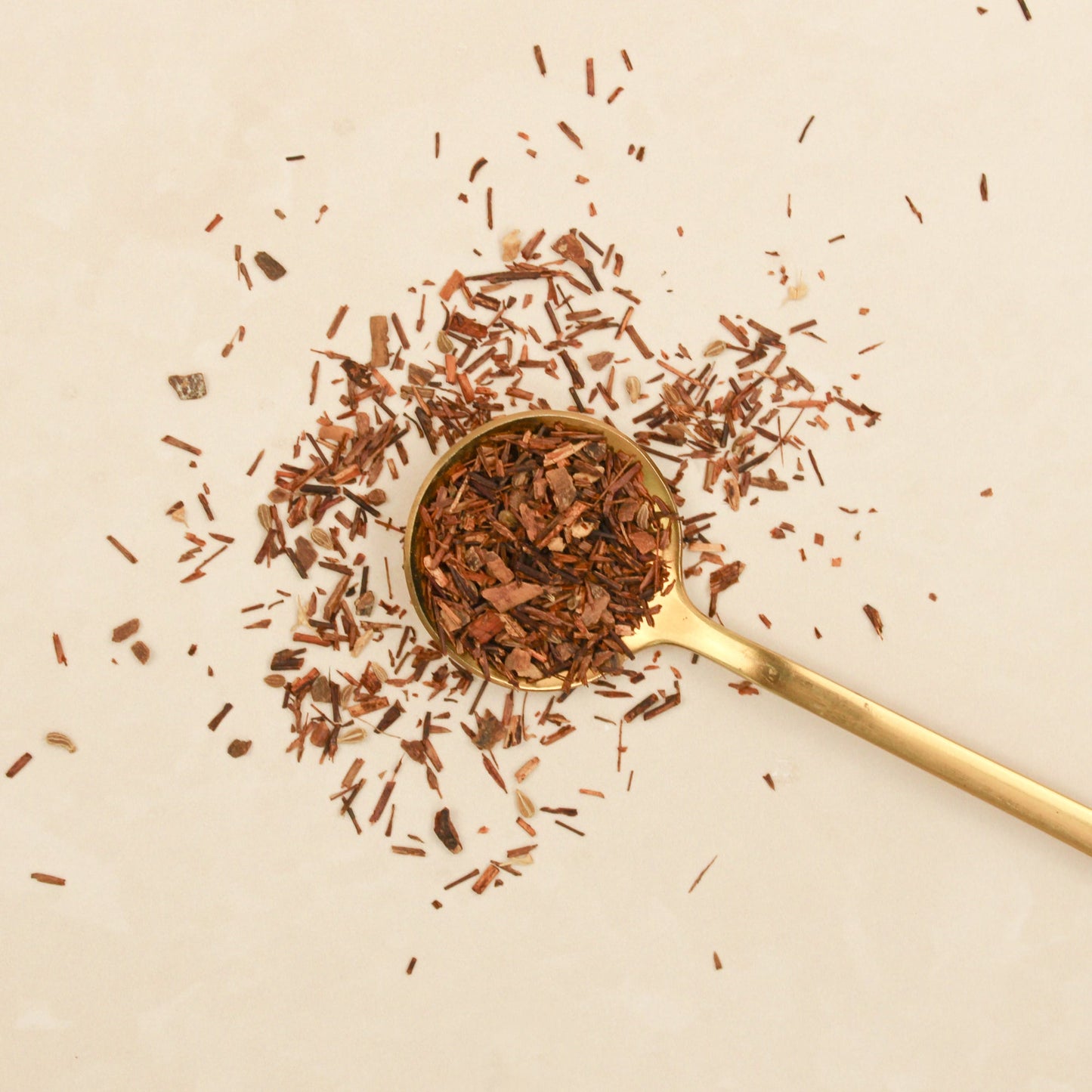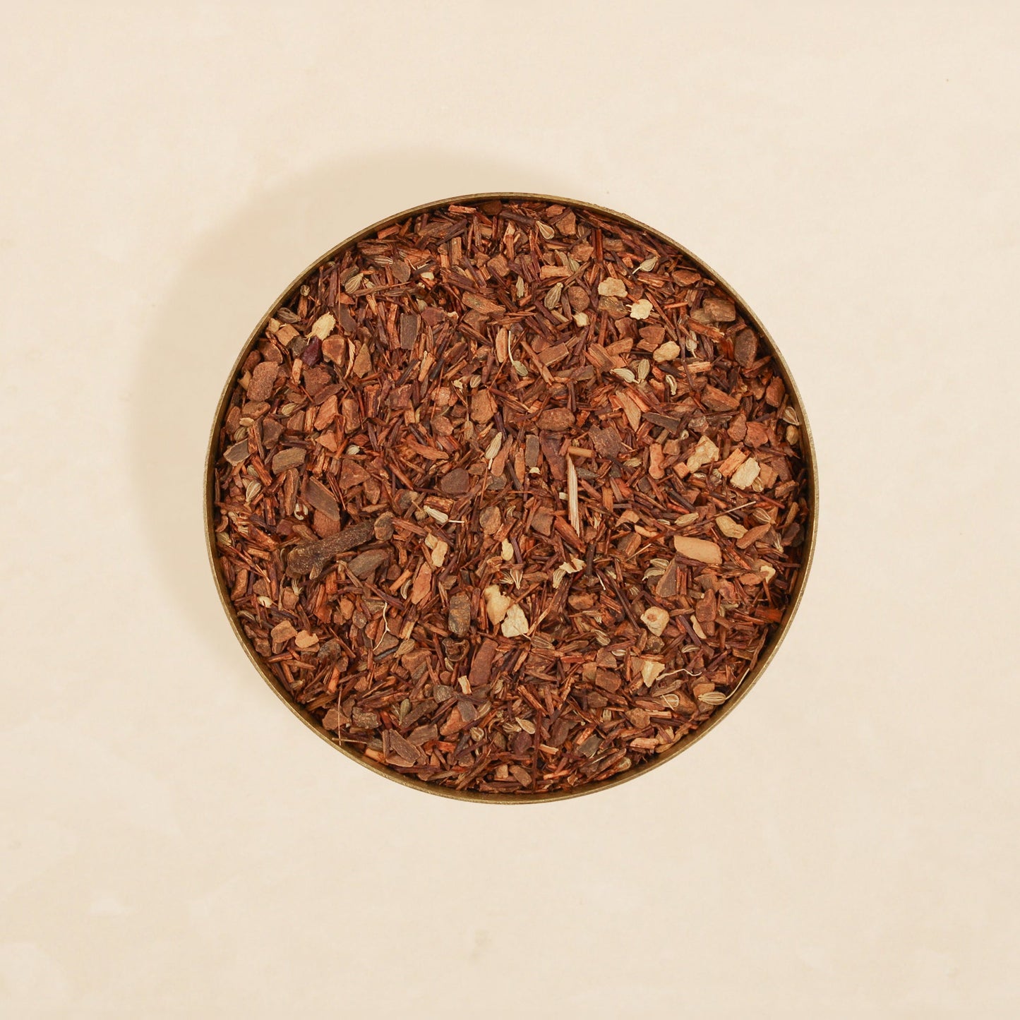A naturally sweet and spiced herbal chai, Rooibos Chai perfectly blends sweet Rooibos from South Africa with warming spices including cloves, cinnamon, peppercorns, fennel, and ginger to create the ideal caffeine-free sip.
