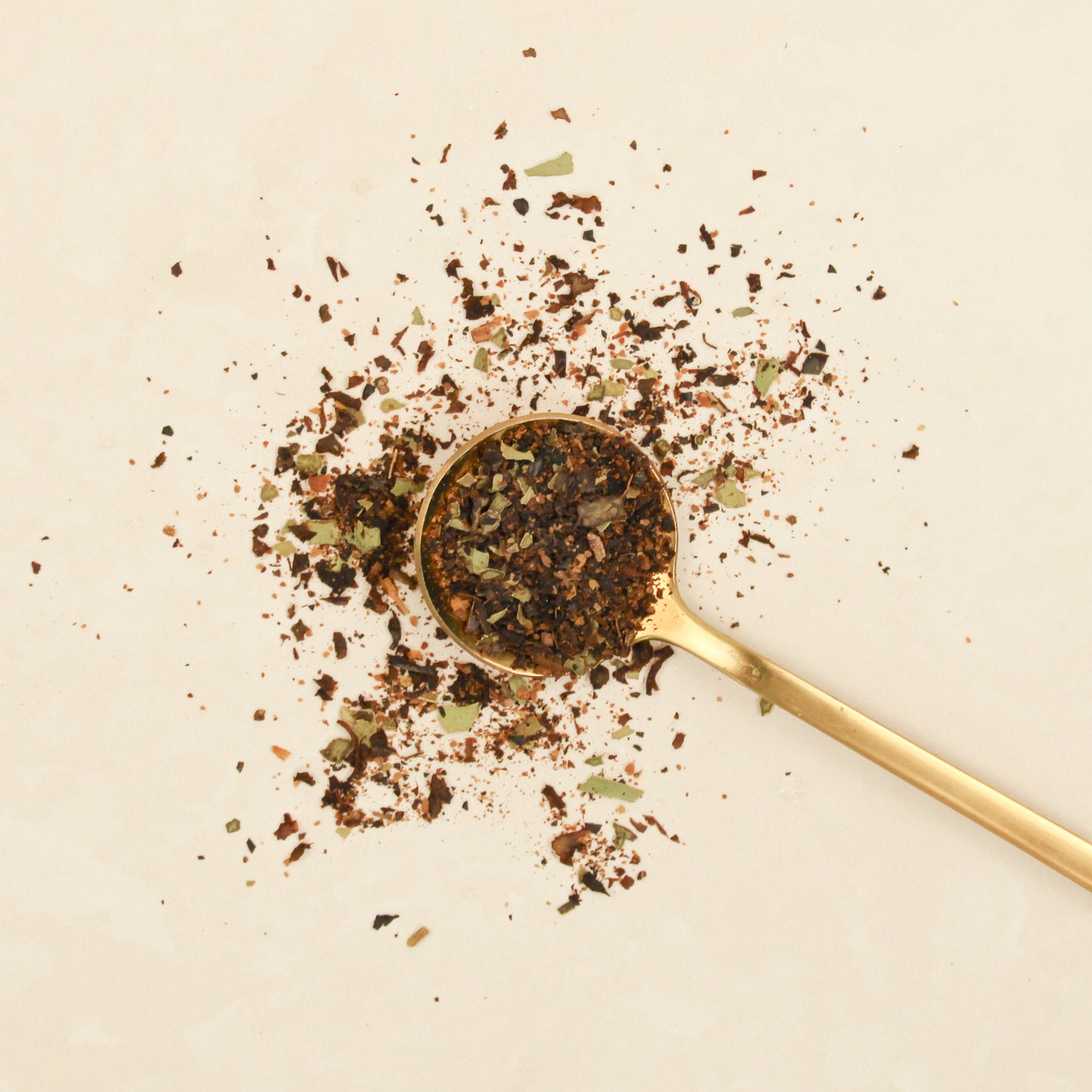 This spice-spiked bush blend reimagines chai with a peppering of native aniseed myrtle. Where India traditionally simmers, The Tea Centre tempers with fire. In the height of summer, our farmers’ husk ripe seed pods and parch the wattleseeds inside over open flame. After cooling, threshing and sieving, we churn the seeds with pungent pepperberry, sweet aniseed, and Daintree black tea to create a blend that envelops the palate with exquisite chai flavour.