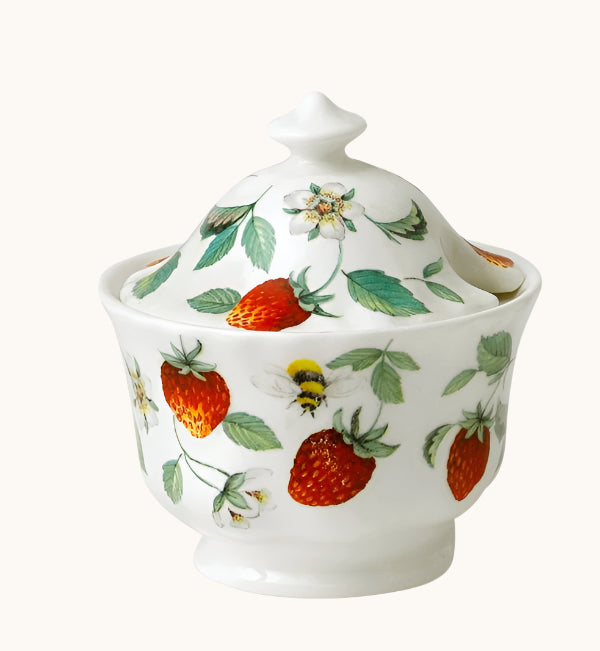 Steeped in the rich heritage of English ceramics, this Sugar Bowl is made of durable and elegant fine bone china and decorated with an exclusive Alpine Strawberry design.